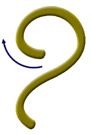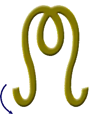 Verwende dann das Symbol Schamba. Du beginnst beim Zeichnen in einem Zug unten mit dem kleinen Kreis gegen den Uhrzeigersinn drehend, danach die aufsteigende Welle. Zeichne auch dieses Symbol dreimal mit deiner Hand vor dir in den Raum, gemeinsam mit der Bewusstseinsformel für Schamba: